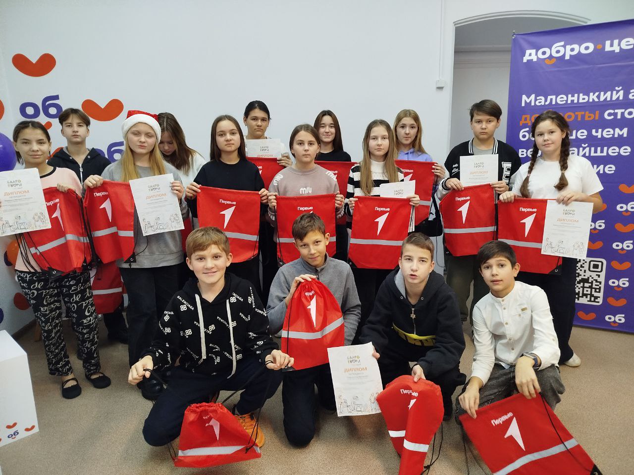 9 января в Добро.Центре Пестяки | МП ИРОО РЦОДД ИВЦ состоялось торжественное награждение участников отряда. От регионального отделения Движения Первых ребята получили ценные подарки — брендированные мешки для обуви.