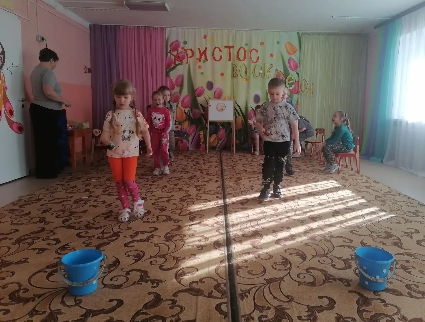В младшей группе «Ромашки» царила настоящая праздничная атмосфера! Мы с ребятами отпраздновали Пасху на нашем развлечении «А мы Пасху празднуем». Было много улыбок, песен и, конечно же, ярких впечатлений от знакомства с пасхальными традициями.