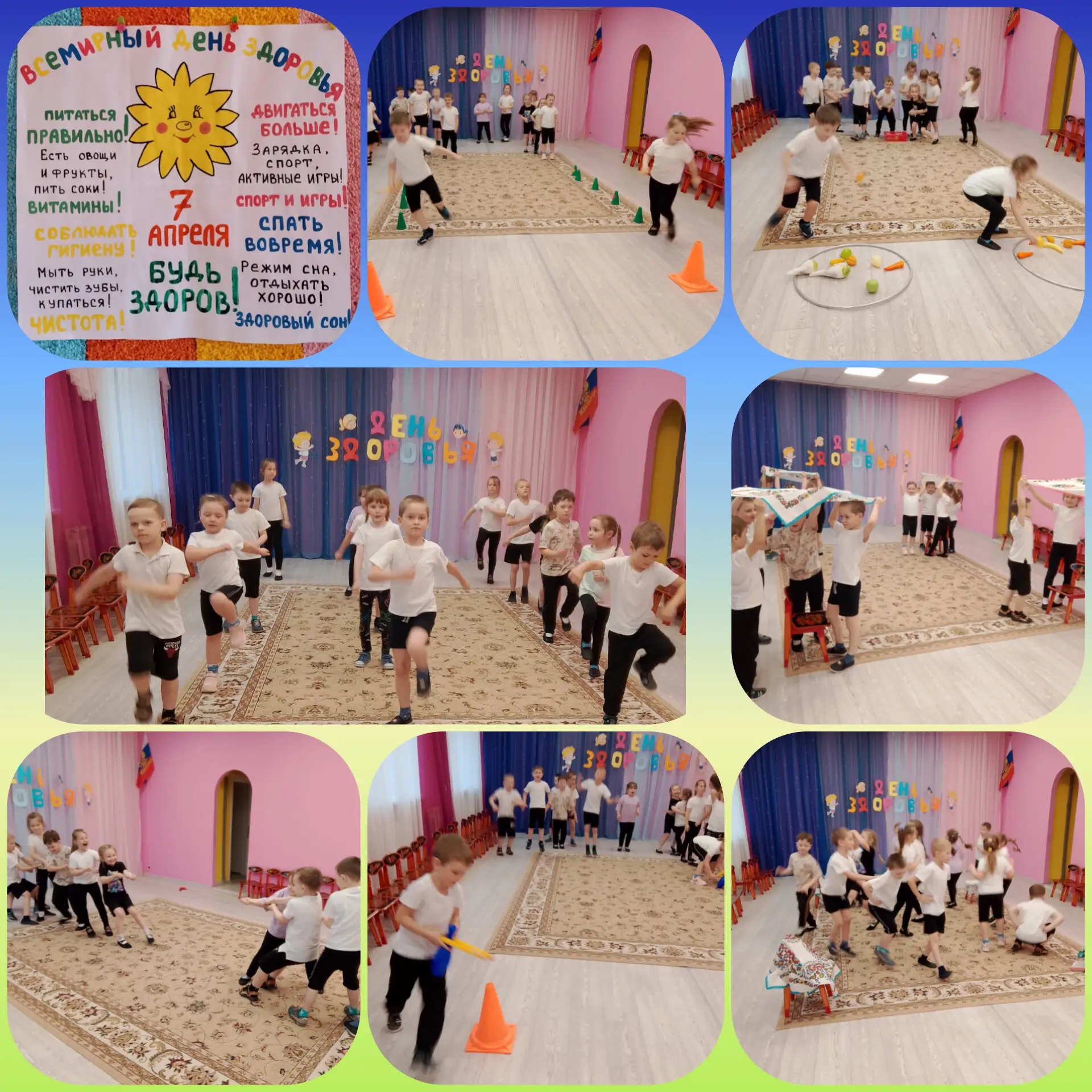 Сегодня в нашем детском саду прошёл День здоровья, приуроченный сразу к двум важным датам — Международному дню спорта и Всемирному дню здоровья. Для воспитанников всех возрастных групп были организованы познавательные и активные мероприятия.