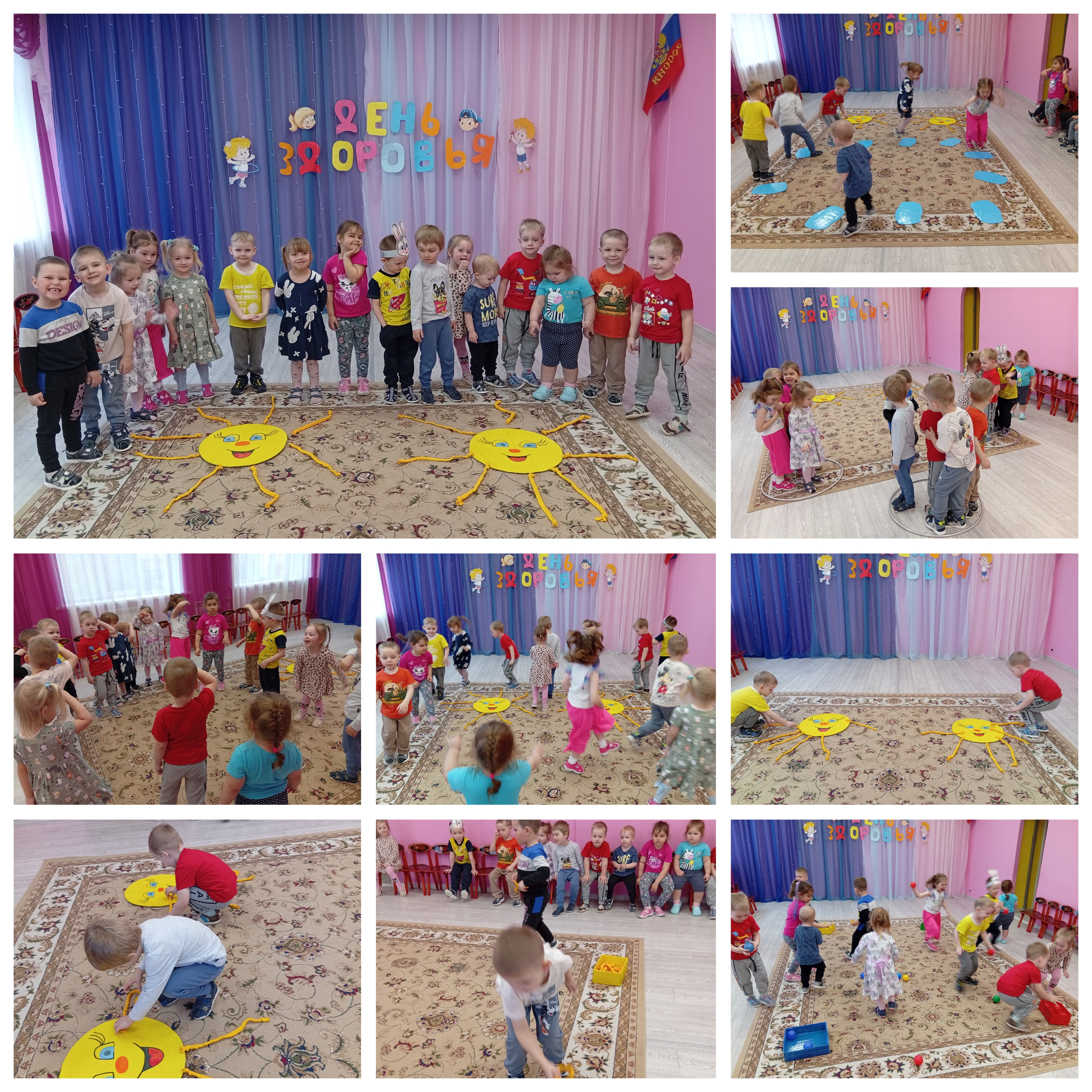 В спортивном зале, где царила особая атмосфера с детьми были проведены весёлые старты и эстафеты, в которых дети с азартом участвовали. Такие активности не только укрепляют здоровье, но и учат работать в команде, радоваться успехам друг друга и поддерживать позитивный настрой, формируют у детей осознанное отношение к своему здоровью с самого раннего возраста.