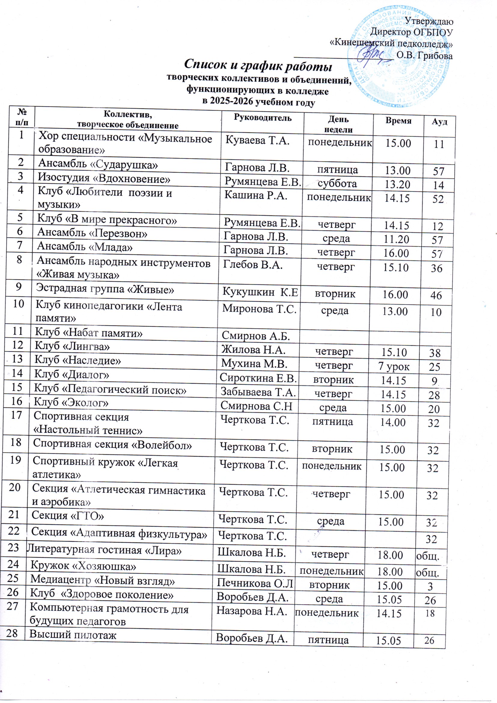 Cписок классных руководителей 2025-2026 уч. год
