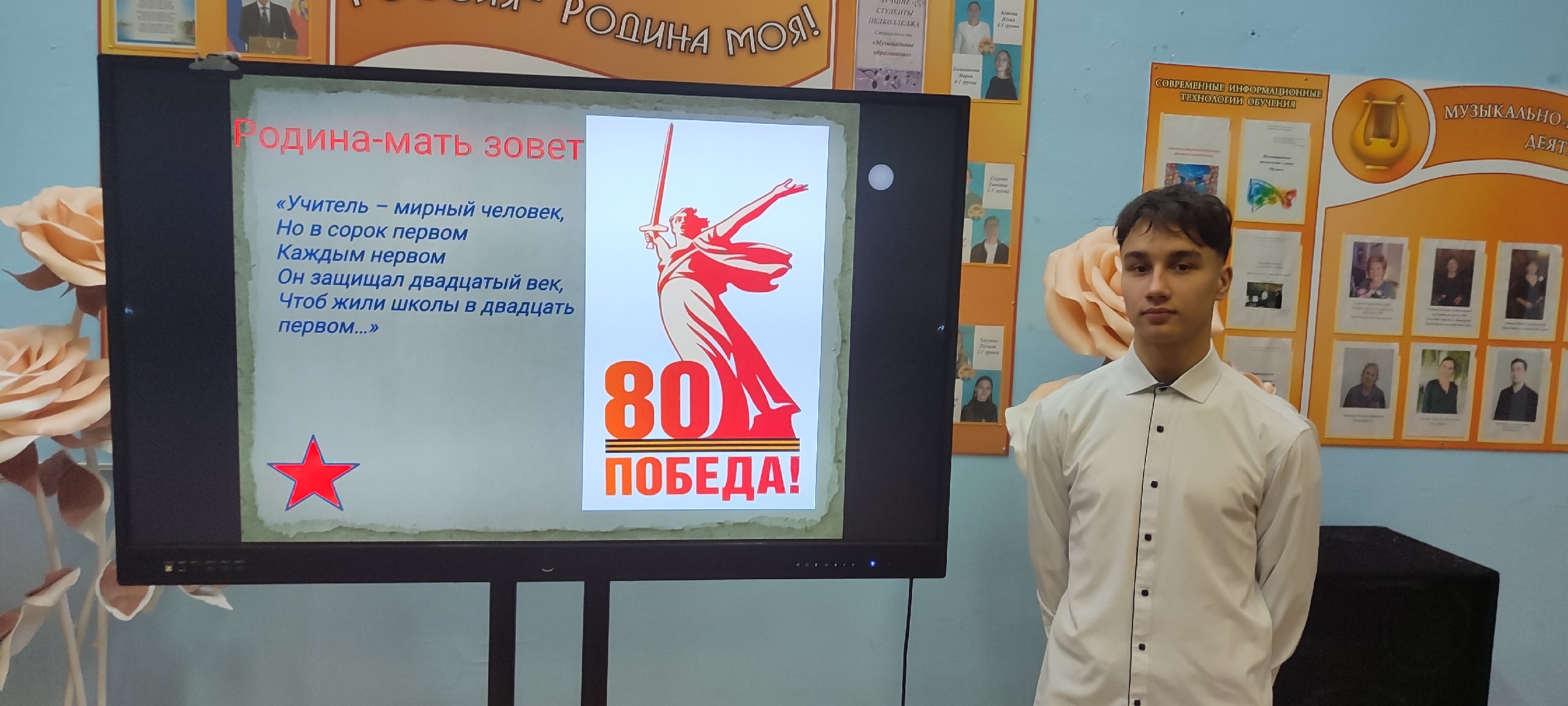 В этот день в колледже состоялась торжественная линейка, посвященная этой памятной дате. Мы склоняем головы перед подвигами наших предков, которые сражались за свободу и независимость нашей земли в самые трудные времена. Мы вспоминаем героев Великой Отечественной войны, чья доблесть и мужество позволили нам жить под мирным небом. Мы чтим героев мирного времени, тех, кто проявляет героизм в повседневной жизни, спасая жизни, совершая научные открытия, развивая нашу страну. Участником мероприятия стал участник специальной военной операции Лейтенант Соколов А.А.