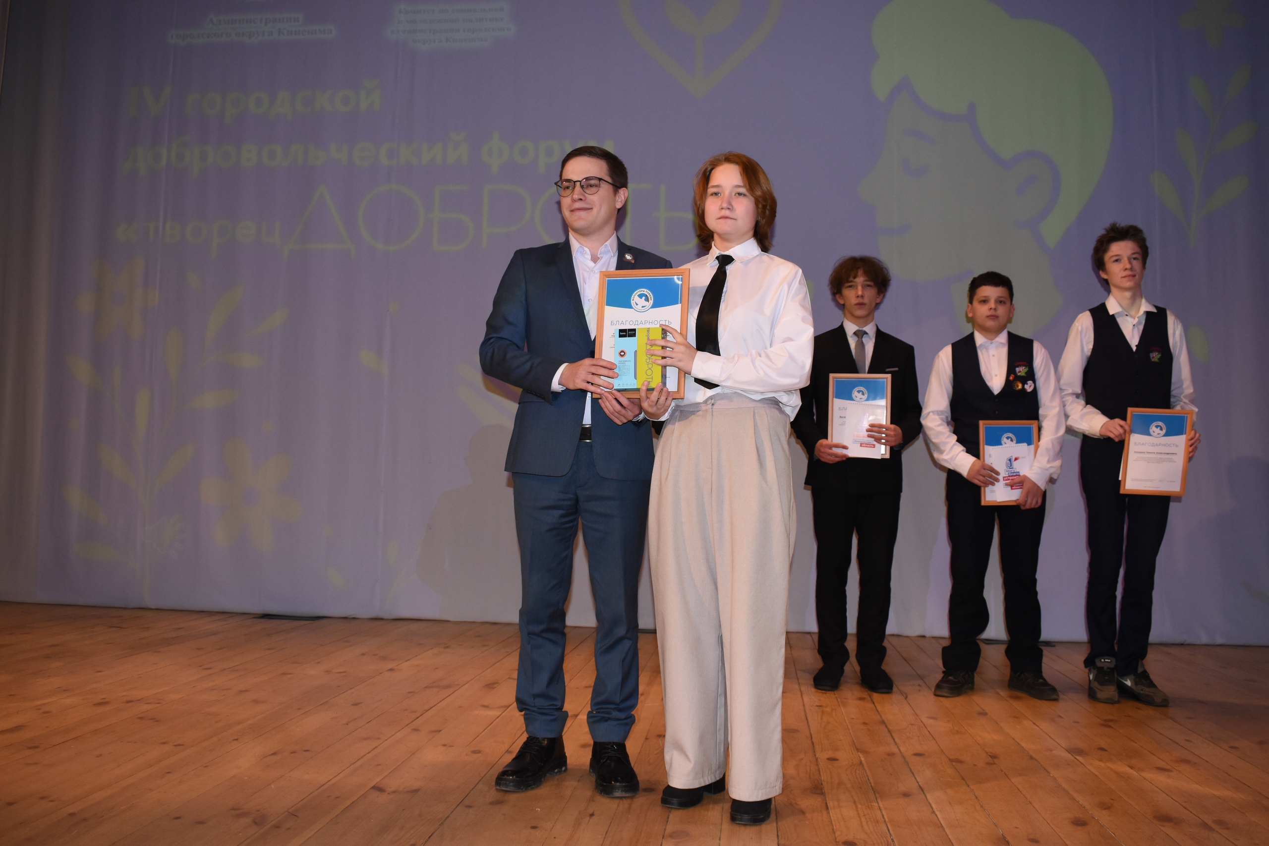 Волонтеров приветствовали глава Кинешмы В.Г.Ступин, заместитель Председателя областной Думы А.Г. Фомин, председатель городской Думы, секретарь городского отделения партии «Единая Россия» О.Н. Яншенкина, председатель комитета по молодежной политике Ивановской области У.В. Смородинова, руководитель Всероссийского общественного движения «Волонтëры Победы» в Ивановской области А. Коротков, заместитель директора регионального благотворительного фонда «Своих не бросаем» Ю.Шестаков. Все поблагодарили добровольцев за активную жизненную позицию, милосердие, энтузиазм, неустанный и самоотверженный труд. Волонтерам пожелали успехов в добрых делах, созидательной энергии, здоровья и счастья.