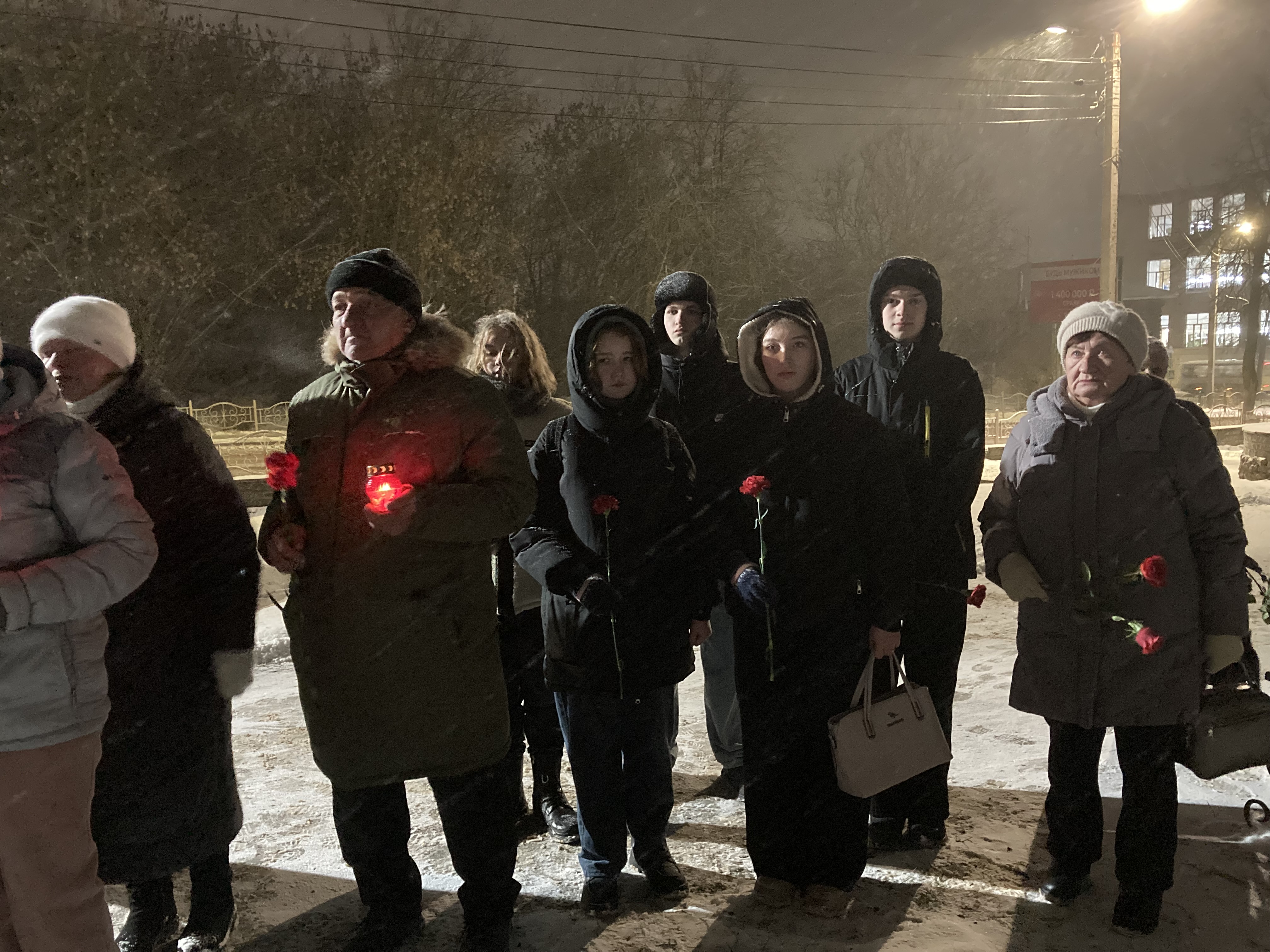 Почтив память не вернувших с полей сражений минутой молчания, собравшиеся возложили цветы и зажжённые свечи к мемориалу.
