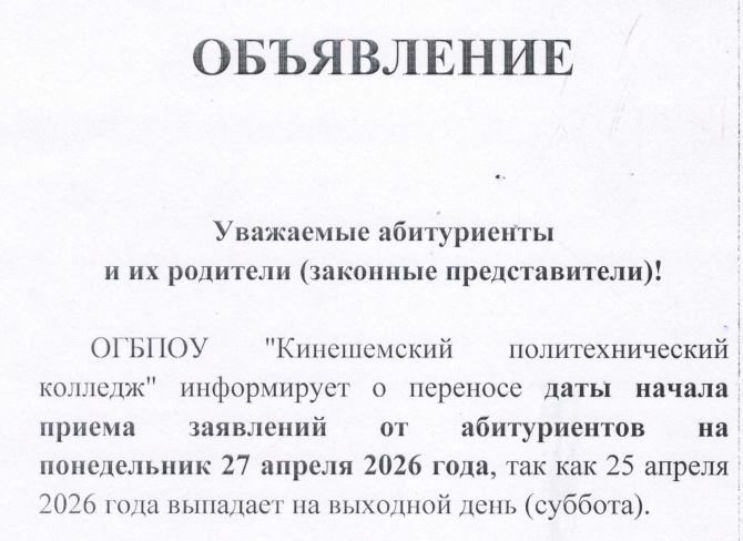 Перечень специальностей, профессий, по которым объявляется прием на 2023-2024 учебный год в рамках реализации ФП «Профессионалитет» на базе ОГБПОУ «Кинешемский политехнический колледж»