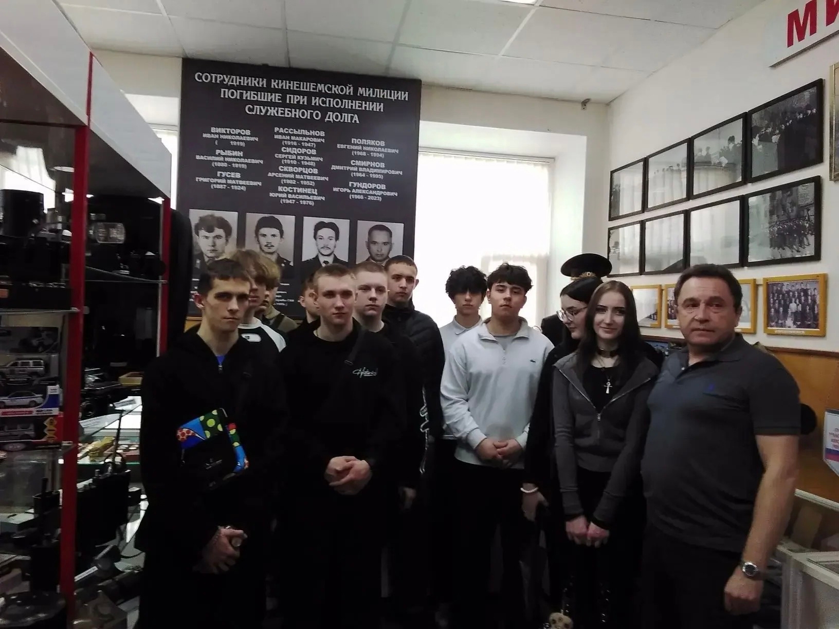 3 апреля 2026 года студенты вместе с преподавателями Кинешемского политехнического колледжа совершили своеобразный экскурс в прошлое нашей малой родины, а точнее одной из её структур — музей истории полиции города Кинешма. В полиции побывали студенты групп 4-24, 7-25, 3-25, 2-25 вместе со своими кураторами Лебедевой О.Е., Амелиной М.В., Стрежневой О.И., Козловой А.В. Увлекательную экскурсию провели опытные сотрудники, активисты — ветераны органов внутренних дел Герасимов Павел Валерьевич и Скоморохов Юрий Юрьевич. Они собирали документы в архивах, восстанавливали биографии сотрудников, по крупицам устанавливали их судьбы. Многие материалы подарены музею родственниками бывших сотрудников: личные вещи, письма, награды. Часть материалов взяли в архиве милиции, другие документы ветераны находили в государственных хранилищах, семейных и личных коллекциях Студенты и преподаватели смогли познакомиться с историей развития и трансформации обмундирования сотрудников правоохранительных органов, начиная с конца IX века и заканчивая современностью. На экспозиции представлены служебные формы 1940-х, 1960-х годов, а также старое снаряжение старшего сержанта 1970-х годов. Ознакомились с коллекцией наград, памятных знаков и образцов вооружения разных эпох и разных подразделений. В ходе посещения ребята познакомились с историческими материалами и экспонатами музея, увидели предметы службы сотрудников полиции, в которых отражена история развития МВД, среди них: средства фотофиксации, печатные машинки, рации, атрибуты сотрудников службы ГАИ, а ныне ДПС, технические средства криминалистики, технические средства для задержания преступников, а также некоторые предметы быта. Узнали много нового о профессии, службе и подвигах сотрудников МВД. Служба в органах внутренних дел — это напряженная, порой опасная, но важная и нужная обществу работа, требующая мужества и отваги, умения логически мыслить и сопереживать. Особое внимание привлекал стенд памяти, посвященный сотрудникам кинешемской милиции, павшим при исполнении своего профессионального долга в тот или иной период жизни и развития нашей родины. Помимо познавательной экскурсии ребятам рассказали о перспективах службы в полиции, провели профилактическую беседу на злободневные темы: кибер-мошенничество, дроппинг, рассказали о вреде наркотиков. Старший лейтенант полиции Малов А.В., специалист группы профессиональной подготовки отдела по работе с личным составом МО МВД “Кинешемский”, наглядно продемонстрировал процесс разборки автомата Калашникова и пистолета Макарова. Показали и дали примерить защитную амуницию. Не только мальчишки, но и девчонки активно участвовали в процессе, проявляя искренний интерес. Ребятам так понравилось, чтотони даже устроили между собой небольшое состязание на скорость разборки-сборки автомата. Эта встреча подарила всем новые впечатления и новые знания!