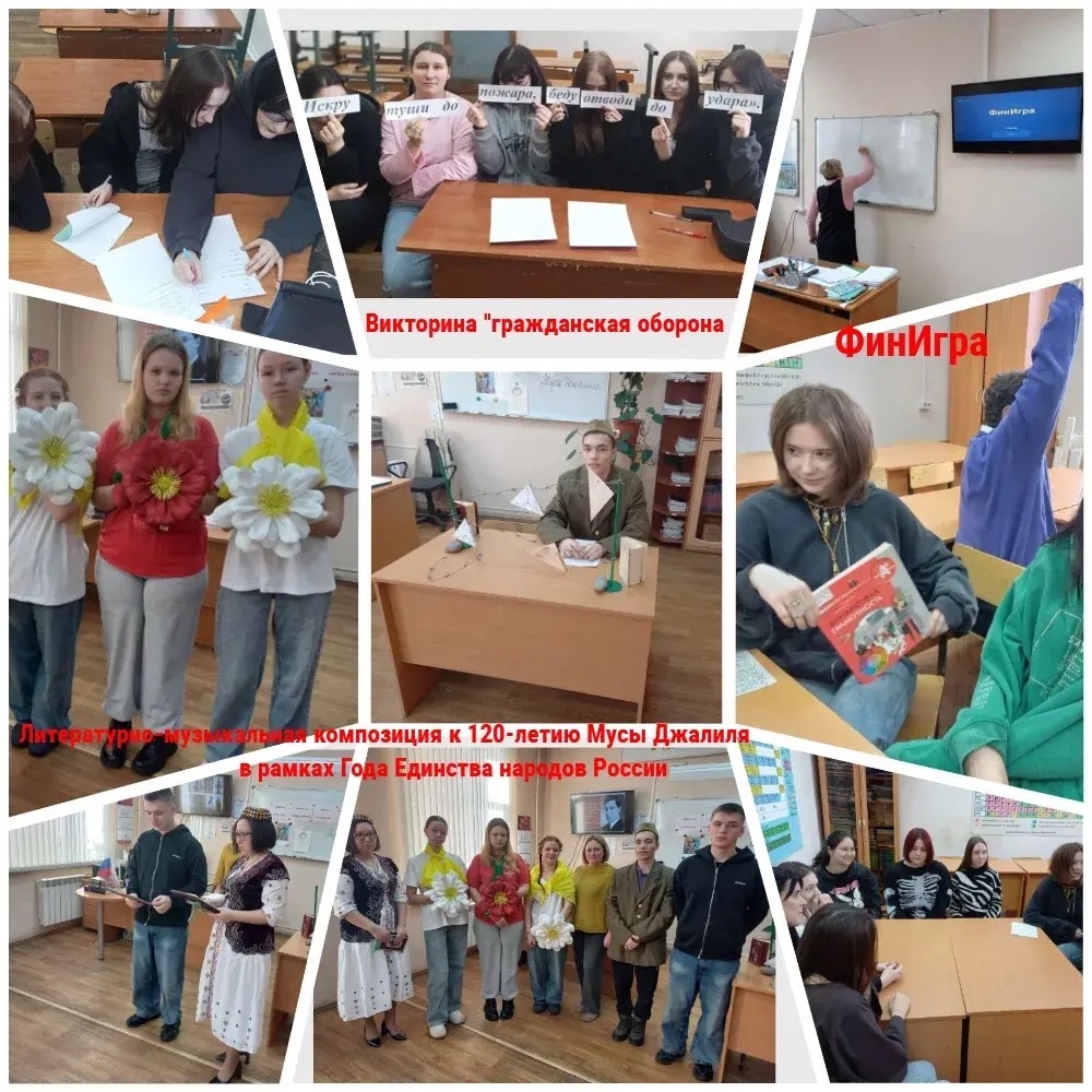 Методическая декада общеобразовательных дисциплин С 9 по 18 февраля 2026 в нашем колледже проводилась методическая декада предметов общеобразовательного цикла по теме «Активные и интерактивные методы обучения при формировании общих и профессиональных компетенций студентов» под общим названием «Марафон знаний». Все мероприятия были направлены на развитие познавательной активности студентов, их творческих и коммуникативных способностей, общих и профессиональных компетенций, а также на формирование интереса к изучению общеобразовательных дисциплин. ✓ Игра- решение задач «Детективное агентство» (Преподаватель математики Соегова Г.А.) ✓ Баттл на знание грамматики английского языка (Преподаватель иностранного языка Вознякова Н.А.) ✓ Викторина по ОБиЗР «Гражданская оборона» (Преподаватель ОБЖ Муханова Е.С.) ✓ Математическая викторина (Преподаватель математики Сметанина Н.В.) ✓ Интерактивная викторина «ФинИгра» (Преподаватель финансовой грамотности Стрежнева О.И.) ✓ Круглый стол «Поиск новых методов и приемов по обеспечению индивидуализации образовательных траекторий обучающихся». ✓ Конкурс скоропечатания «Клавагонки» (Преподаватель информатики Украинская С.А.) ✓ Страноведческая викторина по немецкому языку «Знаете ли вы Германию?» (Преподаватель немецкого языка Юхман О.Н.) ✓ Литературно-музыкальная композиция, посвященная 120-летию со дня рождения татарского поэта Мусы Джалиля (в рамках 2026 — Года единства народов России) (Преподаватель литературы Козлова А.В.) ✓ Физический баттл (Преподаватель физики Бельщикова Л.Н.) ✓ Интегрированный урок «Исторический суд» (Преподаватели истории Амелина М.В. и преподаватель обществознания Лебедева О.Е.) Благодаря проведенным мероприятиям студенты получили много новой и интересной информации, показали хорошие знания по всем общеобразовательным дисциплинам, проявили свои творческие способности, смекалку, эрудицию и спортивный азарт и испытали множество положительных эмоций.