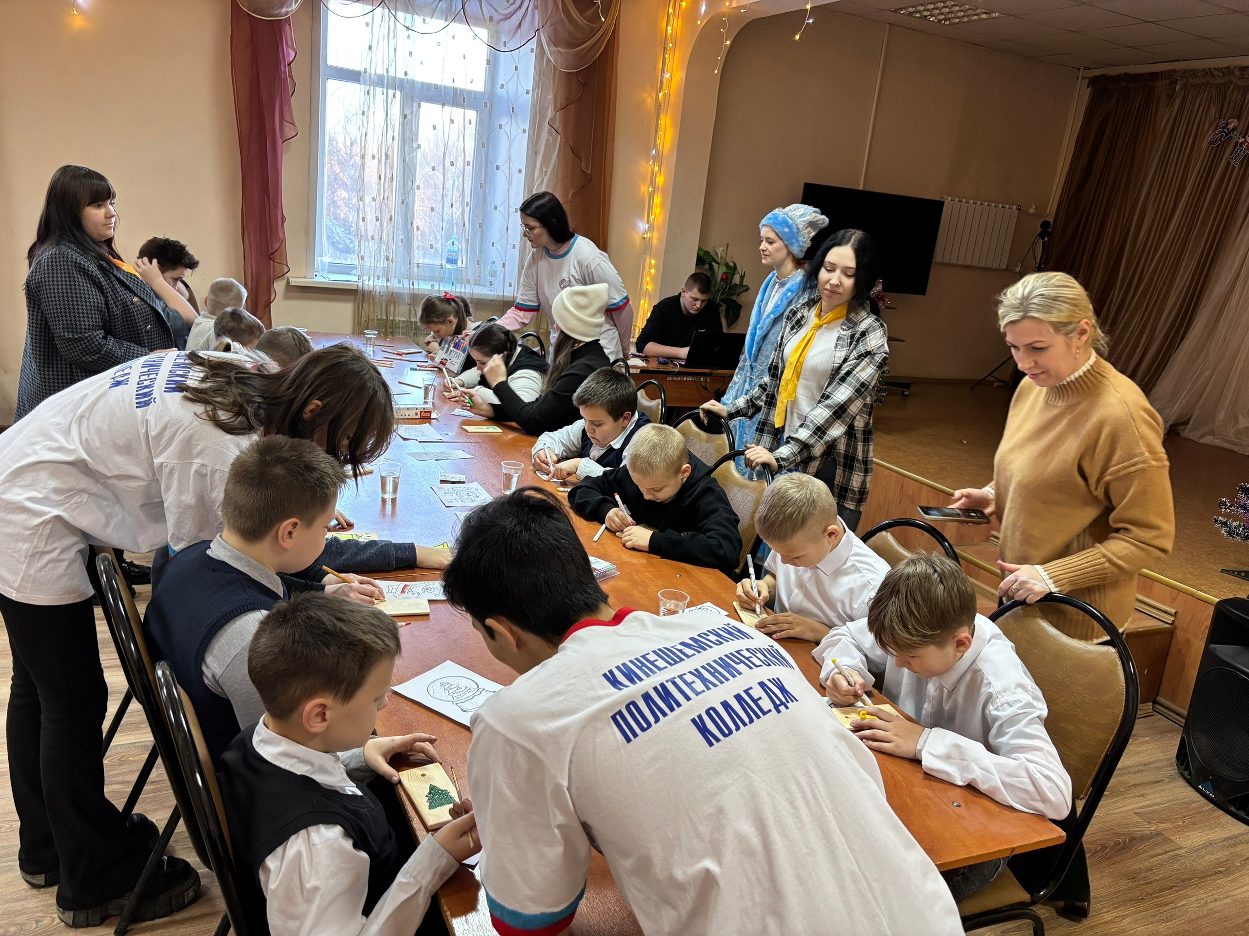 В преддверии самого волшебного праздника, в Кинешемском политехническом колледже состоялась благотворительная новогодняя ёлка для детей участников специальной военной операции Волонтерский отряд движения Первых Кинешемского политехнического колледжа «Добрые сердца» под руководством куратора Ж.А. Юрицкой 23 декабря провели развлекательно-развивающее мероприятие с мастер-классом «Новогодние сюрпризы». Праздник для детей и их родителей уже стал традиционным и проводится в образовательной организации 4-й год. В этом году гостями стали 15 ребят. Волонтеры колледжа каждый раз готовят новогоднее представление, дарят сладкие подарки детям и хорошее настроение их родителям. В этом году помимо традиционных развлечений для ребят был устроен мастер-класс по росписи новогодней деревянной игрушки, которую своими руками изготовили учащиеся профессии «Столяр строительный» под руководством мастера С.Г.Бученкова. После мастер-класса ребят ждала творческая программа с участием волонтеров-аниматоров. Главный волшебник праздника, Дедушка Мороз, лично поздравил юных гостей, выслушал их стихотворения. Под зажигательные новогодние мелодии дети пели, танцевали и веселились от души! Также для ребят волонтеры организовали нанесение аквагрима на лицо. Аквагрим — это чудесная возможность перевоплотиться в удивительный образ или любимого героя. Разрисованные красками лица вызвали у детей море радости и восторга. Конечно, дети с удовольствием приняли участие во всех мероприятиях, организованных для них волонтерами. По окончании каждый получил сладкий подарок и много призов, которые были приобретены на средства, вырученные от сдачи студентами макулатуры и собранных всем колледжем средств. Мероприятие получилось радостным, звонким, по-семейному теплым, и доставило много радости детям, их родителям и самим студентам-волонтерам. Слова благодарности адресуем комитету Ивановской области по молодежной политике за оказанную помощь в проведении и организации мастер-класса. Чудо обязательно случится, если в него верить! Пусть этот Новый год принесет всем нам мир, добро и исполнение самых заветных желаний. С наступающими праздниками! #ИвановскаяОбласть