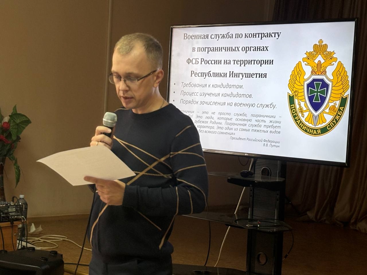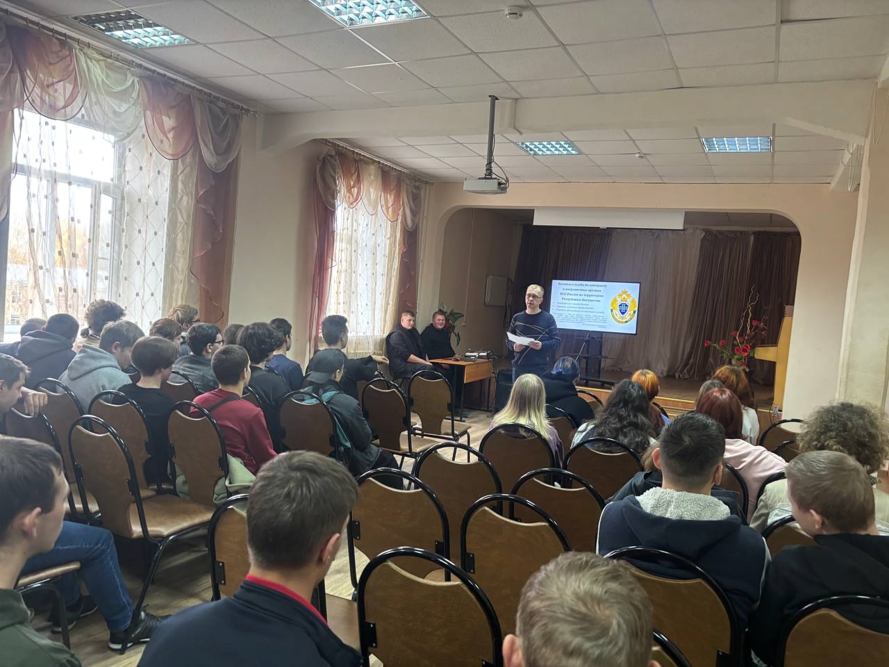 16 октября 2025 года в выпускных группах Кинешемского политехнического колледжа прошла встреча обучающихся с представителем пограничного управления ФСБ России по республике Ингушетии с целью профориентационной работы и приглашения на службу и обучение в высшие военно-учебные заведения. ✍ Студенты узнали о требованиях к кандидатам, процессе изучения кандидатов и порядке зачисления на военную службу. Также их ознакомили с льготами и социальными гарантиями, предоставляющимися военнослужащим. «Пограничник – это не просто служба, пограничники – это судьба! Это люди, которые основную часть жизни проводят на рубежах Родины. Пограничная служба требует особого склада характера. Это один из самых тяжелых видов военной службы, без всякого сомнения», — Президент Российской Федерации В.В. Путин. Особое внимание уделили важности службы в рядах Вооруженных Силах РФ по призыву, на контрактной основе и обучении в военных ВУЗах и ССУЗах страны, льготах военнослужащих, престиже армии. После выступления заинтересованные старшекурсники получили исчерпывающую информацию по всем интересующим их вопросам. Встречи с представителями ФСБ РФ являются традиционными для колледжа и служат одним из элементов гражданско-патриотического воспитания студентов.